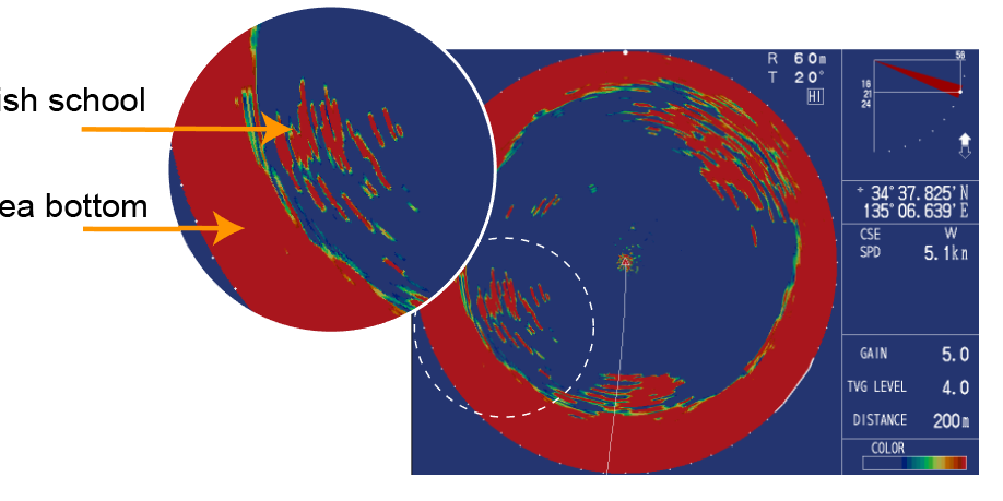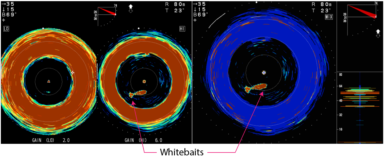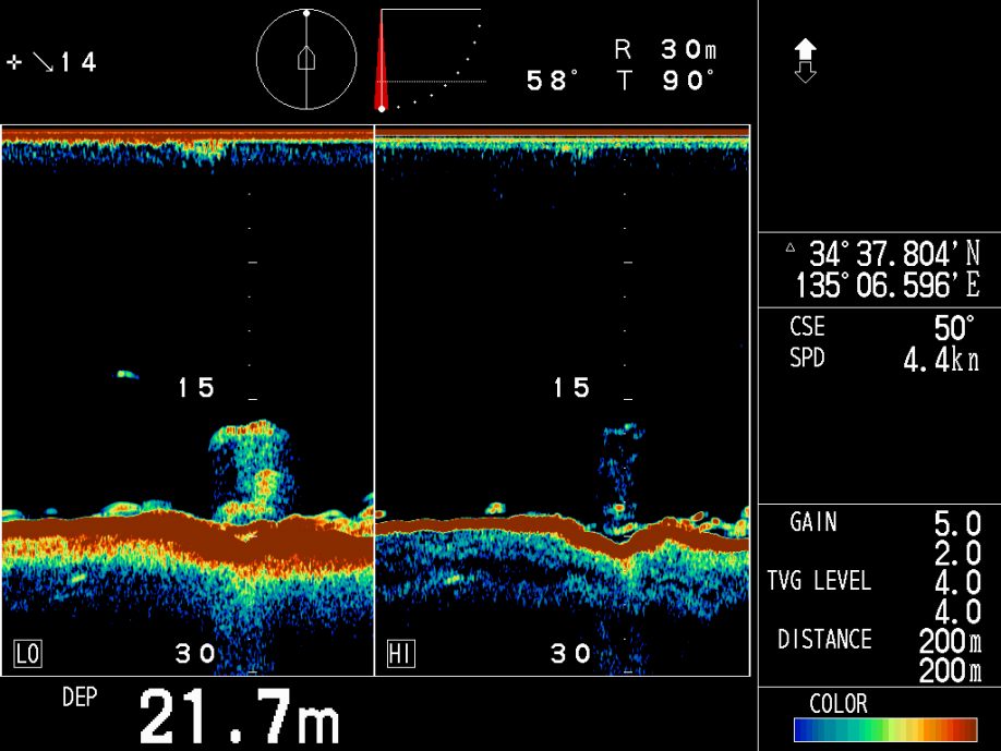 Tvær mismunandi tíðnir í sama sónarnum, CH-600, auka veiði- og afkastagetu hans. Lága tíðnin hentar til að leita lárétt umhverfis allt skipið, háa tíðnin er notuð til leitar lóðrétt undir skipinu og til greiningar á fiskitorfum, tegundum, stærð og hreyfingu. Þessar upplýsingar eru afar gagnlegar við ákvarðanatöku um köstun og staðsetningu veiðarfærisins, stýrða stefnu að torfu o.s.frv.