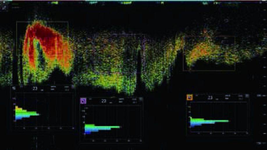 Greiningartækni mælisins á dreifingu fiskendurvarpa sýnir staðsetningu og hreyfingu þeirra. Fiskendurvörp af síðustu þremur sendigeislunum eru sýnd. Setja má hring á einstök endurvörp og því sterkari sem litur hans verður, því sterkara er endurvarpið. Þetta getur verið kostur við að fylgja torfum eftir í mælinum.